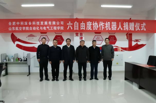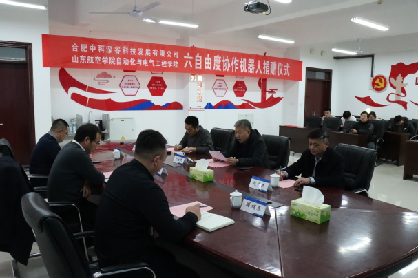 On December 4th, the School of Automation and Electrical Engineering of Shandong University of Aeronautics (SDUA) held a donation ceremony for a six-degree-of-freedom collaborative robot from Hefei Zhongke Shengu Technology Development Co., Ltd.(HFZS) in Meeting Room 313, Teaching Building No. 11. Liu Baomin, a member of the University Party Committee and Vice President, attended the ceremony and delivered a speech. The head of the Cooperation and Development Office accepted the donation on behalf of the university and presented the donation certificate. Attendees included Pan Chao, Deputy General Manager of HFZS, Zhou Jianchun, Head of its Shandong Division, Li Guoliang, Assistant to the Director of Robotics Research Center of Shandong University, as well as heads and faculty representatives from the School of Automation and Electrical Engineering of SDUA.