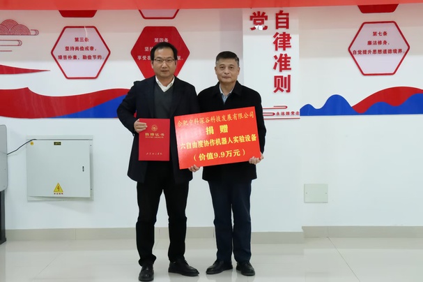 Liu Baomin extended a welcome to Pan Chao and his delegation and expressed gratitude for the company’s kind act in supporting talent cultivation in higher education. He pointed out that the university adheres to the academic layout of “one core, two wings, and three pillars,” and is committed to deepening industry-education integration and school-enterprise collaborative talent cultivation. The donated robot, he noted, meets the practical teaching needs of majors such as automation and intelligent manufacturing. It will enrich teaching and research resources, bridge the gap between theory and industrial practice, and enhance students’ technical application capabilities and engineering literacy. Liu expressed hope that this donation would serve as an opportunity to deepen cooperation with HFZS in areas like joint talent training, scientific research collaboration, and co-building practical training platforms, thereby fostering a new ecosystem for collaborative education. He also urged the school to manage and utilize the equipment effectively, leveraging its role in teaching reform and scientific innovation to improve the quality of talent cultivation.