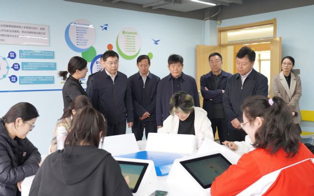 Wang Guangzhong and his team listened attentively to presentations on the center’s functional layout, operational model, and service outcomes. They also focused on a study on college students’ career planning, employment skill coaching, practical ability enhancement, and entrepreneurship incubation guidance.